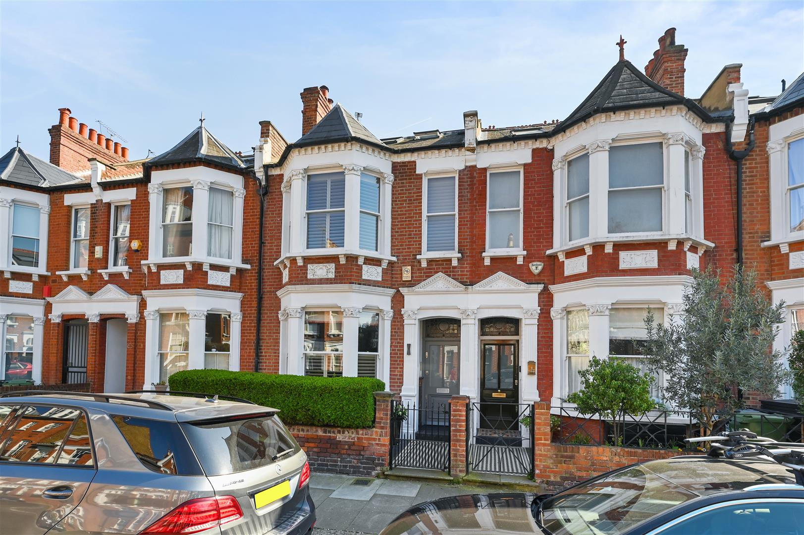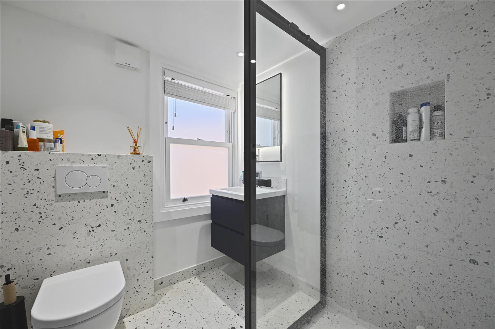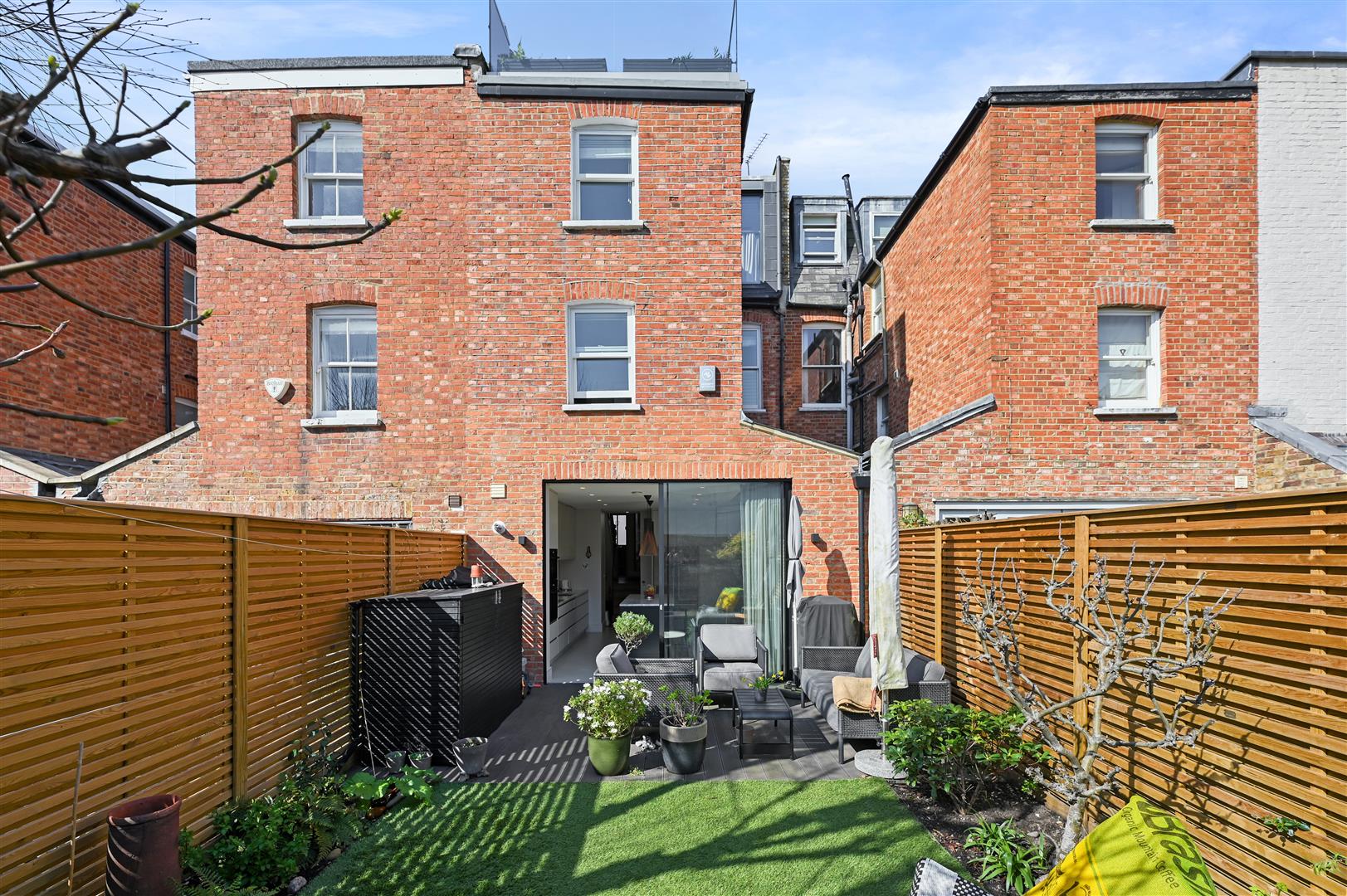 A fabulous, refurbished and extended 5 bedroom mid terrace Victorian house with excellent living/entertaining space over 2 floors, a south-easterly garden and roof terrace. The double reception on the ground floor has a bay window to the front; feature fireplace; herringbone wood floor and bespoke built-in cupboards with an integrated ‘bar’ area to the rear of the room and is accessed via stunning floor-to-ceiling Crittall windows and door from the hallway. Steps lead down to a pocket door which opens into the full-width custom-built kitchen/breakfast room which has excellent built-in storage, large-tiled floor and marble-topped island. There are floor-to-ceiling glass sliding doors onto the garden which is initially decked then ‘London lawned’. Stairs lead down to the lower ground floor which has been excavated to create a wonderful TV/media/family room to the front with floor-to-ceiling glass door and windows to the front lightwell, wood floor and built-in media unit. There is also a utility room and guest cloakroom on this floor. There are 5 bedrooms, 3 bathrooms and a study/bedroom 5 on the upper floors including the fabulous principal bedroom suite which occupies the entirety of the top floor with open plan en suite shower room and glass sliding doors onto a wonderful decked roof terrace. This beautifully presented property of apx 2,082sq ft has been refurbished and extended to a high specification and can be moved into without further expense.