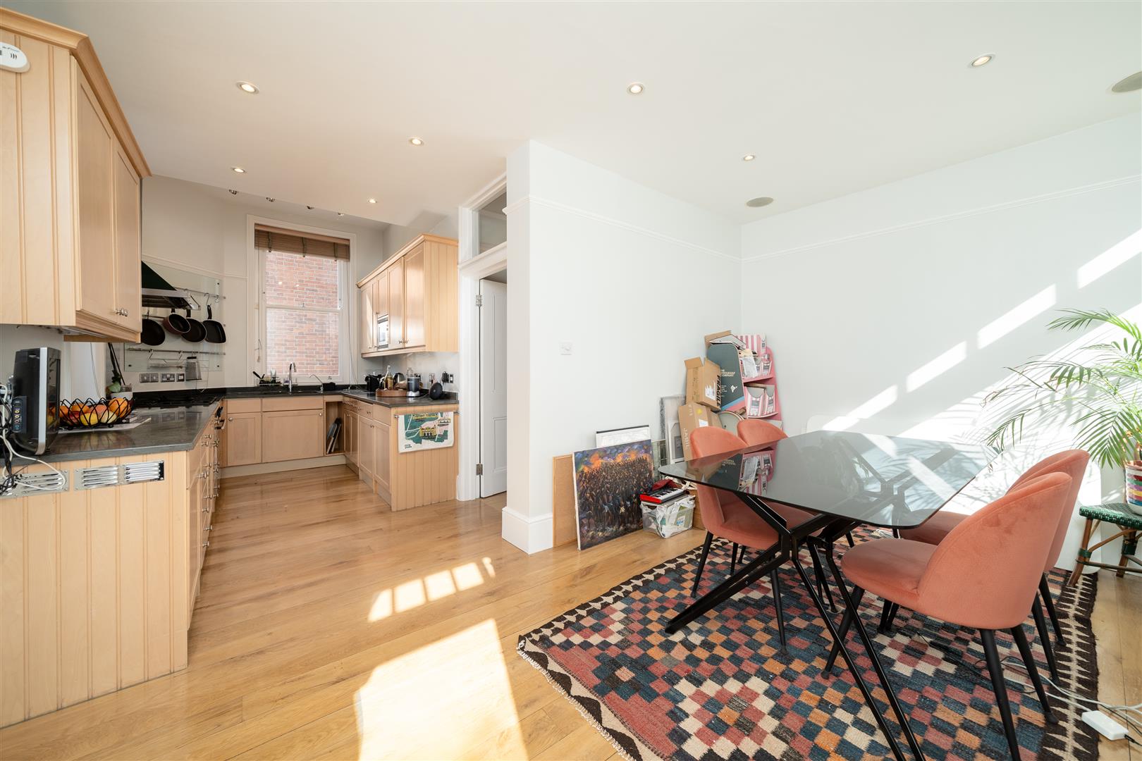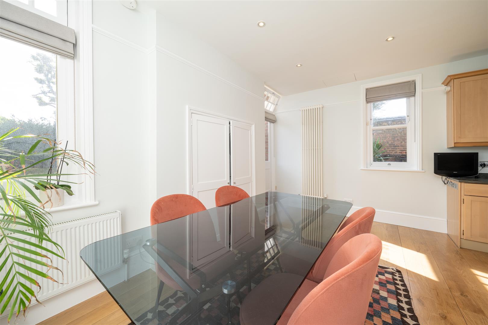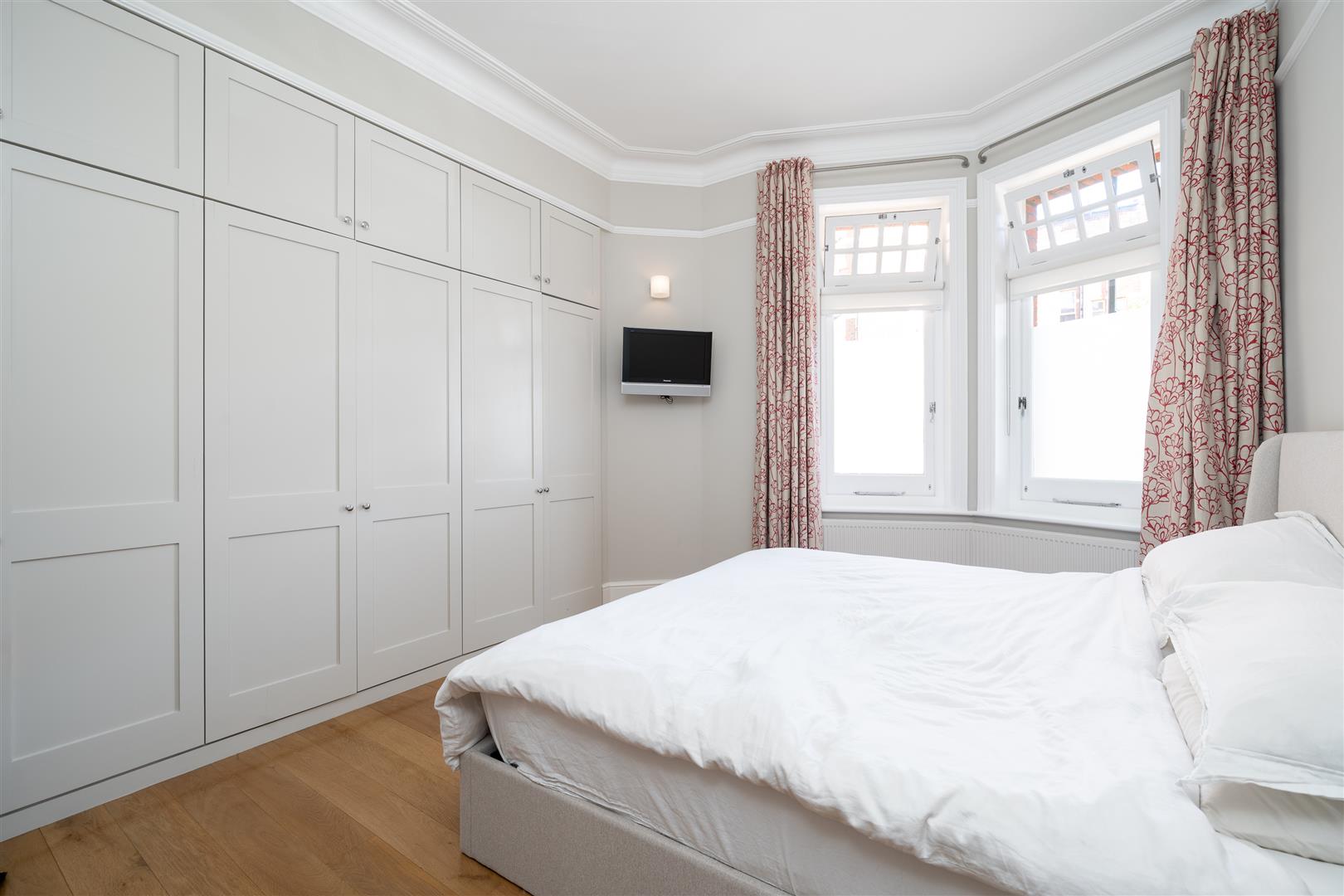 A well-presented, lateral 3 double bedroom apartment situated on the ground floor of a handsome, purpose-built, gated Victorian mansion block on Brook Green. The reception is on the corner of the block and benefits from fabulous dual aspect views across the Green. The full-width kitchen/breakfast/dining room is to the rear and has 4 windows and direct access to the wonderful landscaped communal gardens. There is a concealed utilities area and excellent cupboard space and built-in appliances. The generous principal bedroom is beside the reception and has excellent deep built in wardrobes. There are 2 further bedrooms, a contemporary shower room and a good-sized family bathroom. This highly individual property has rarity value because of its unusual position within Phoenix Lodge Mansions and benefits from wood floors and high ceilings throughout and has the additional benefit of off-street parking.