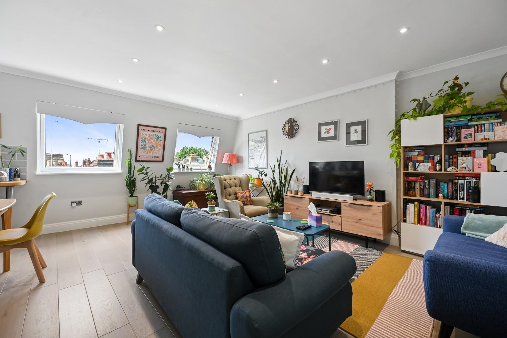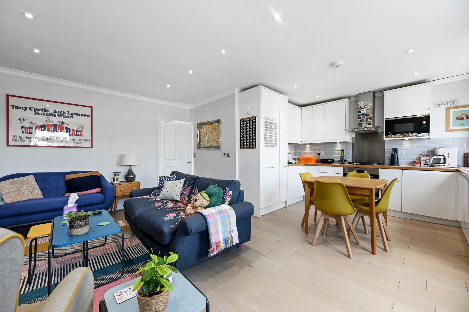 The impressive, full-width open contemporary reception/kitchen/breakfast room has 3 windows overlooking Bolingbroke Road and excellent living/entertaining space with wood flooring throughout. The 2 double bedrooms to the front are generous and have excellent built in storage. There is also a fully tiled bathroom. Subject to planning permission, there is potential to create a breathtaking panoramic roof terrace. This property of approximately 850 sq ft has a wonderful feel and could be moved into at no further expense.