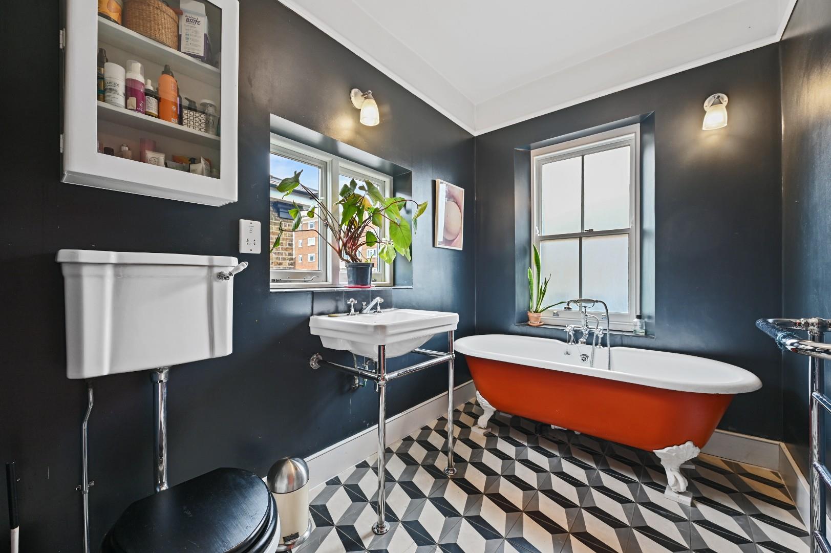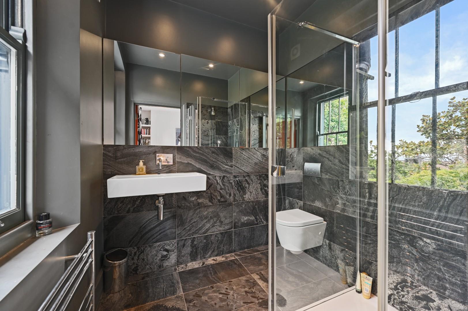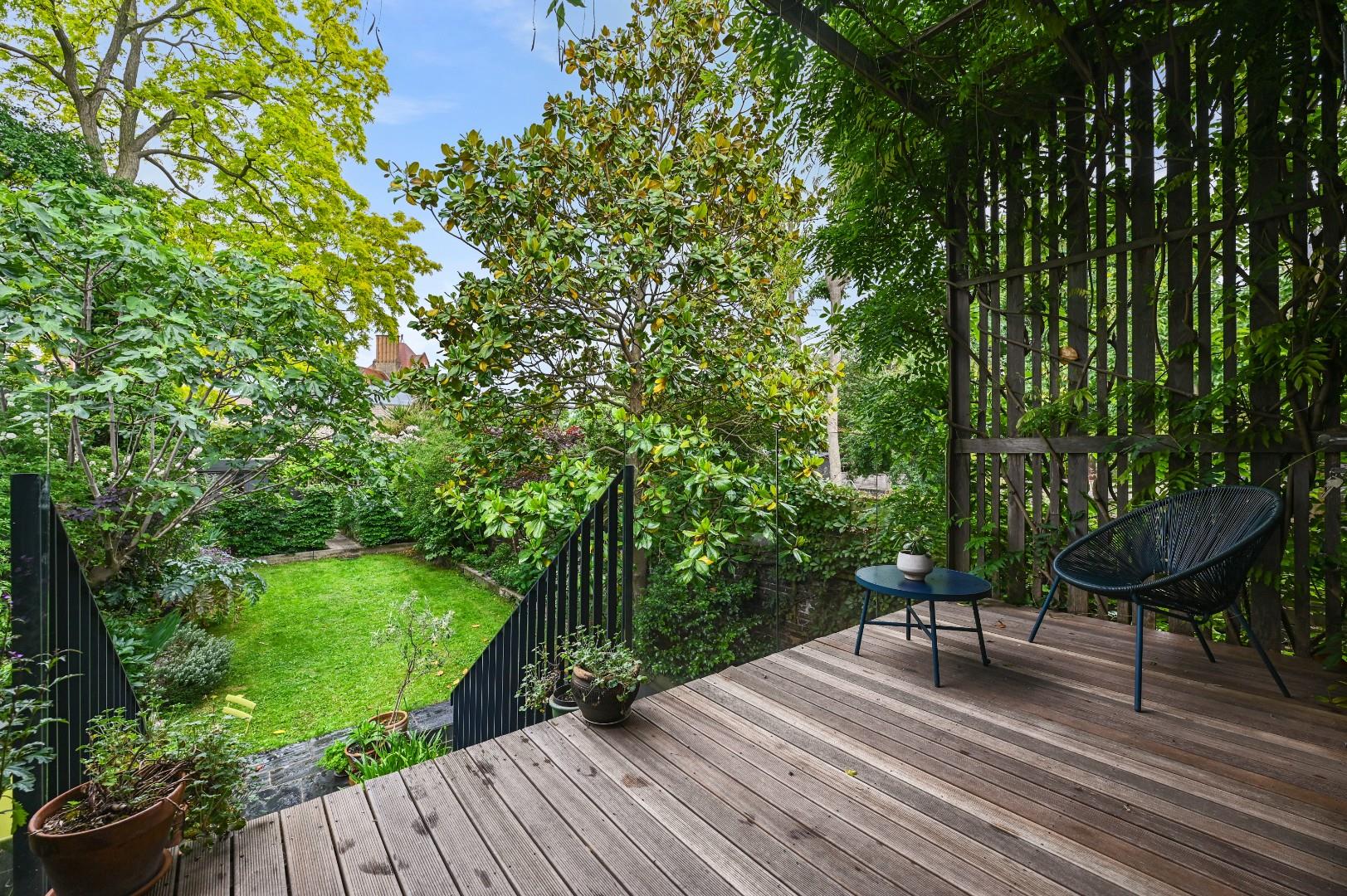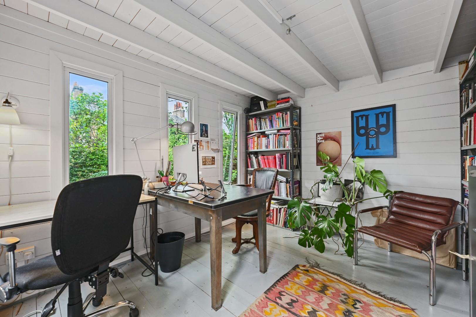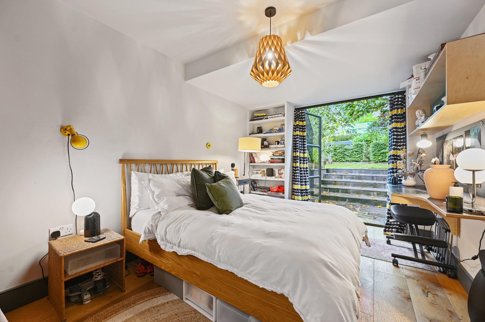 A spacious semi-detached, lateral 5 bedroom period house with a truly wonderful walled 80’ southerly garden, a garden studio, good sized potting shed and off street parking. The raised ground floor has been opened and extended from front to back to create a sensational open plan living/entertaining space. The formal reception area at the front has a floor to ceiling window with bespoke shutters, feature fireplace with built-in bookshelves either side and engineered oak floor throughout. There is also a guest cloakroom on this floor. The kitchen with central marble island is in the centre and there is a fabulous full width dining/family area to the rear with a wood burning stove and Crittall doors and windows opening onto a veranda-style decked terrace. Steps lead down to the beautiful garden which is initially paved and then lawned with mature shrubs and trees. There is a useful garden studio and potting shed to the rear and a well-stocked vegetable/fruit/herb garden. On the lower ground floor there are 3 double bedrooms; a 2nd reception/media room; a shower room and utility room with 2 of the bedrooms having direct access to the garden. There are 2 double bedrooms and a generous bathroom on the first floor including the fabulous principal bedroom suite which has a walk-in dressing room and en suite shower room. The vaulted loft space has been boarded and there is extensive eaves storage. This fabulous family house of approximately 2,300 sq ft provides truly flexible accommodation over 3 floors and retains an abundance of period features.