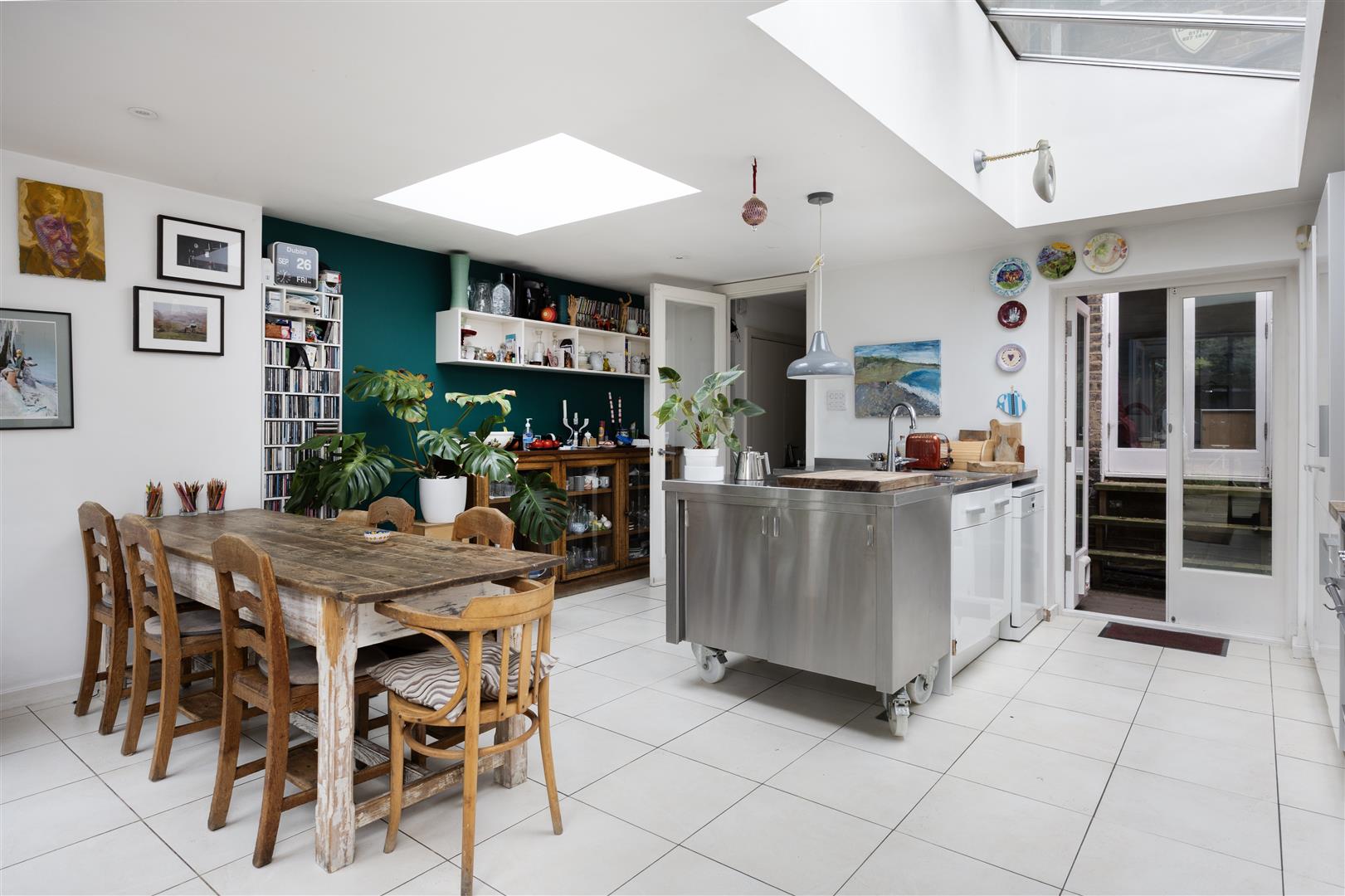 A wonderful 4 double bedroom Victorian mid-terraced house with very good living/entertaining space on the ground floor and a truly fabulous 70’ apx garden with a garden office. There is a high-ceilinged reception to the front with stripped original floorboards; a tall bay window with original shutters and a working feature fireplace with dwarf cupboards and shelving. There is a second reception / study behind with a marble feature fireplace; a built-in bookcase and French doors to a decked lightwell. Steps lead down from the hallway to the full-width kitchen/breakfast room which has a tiled floor; a wood burning stove and 2 sets of floor-to-ceiling Crittall-style French doors and windows which open onto the incredible garden. The walled garden is initially decked, then paved with a central lawned area and there is a useful garden office/studio at the end of the garden. There is also a guest cloakroom; a utilities/laundry cupboard and access to good cellar storage where there is a photographer’s dark room. There are 4 very generous double bedrooms, a bathroom and shower room on the upper floors. This period house of approximately 2130 sq ft has a wealth of original features and a lovely feel. It also offers potential and ample scope to extend and upgrade to one’s own taste and style subject to the usual planning consents.