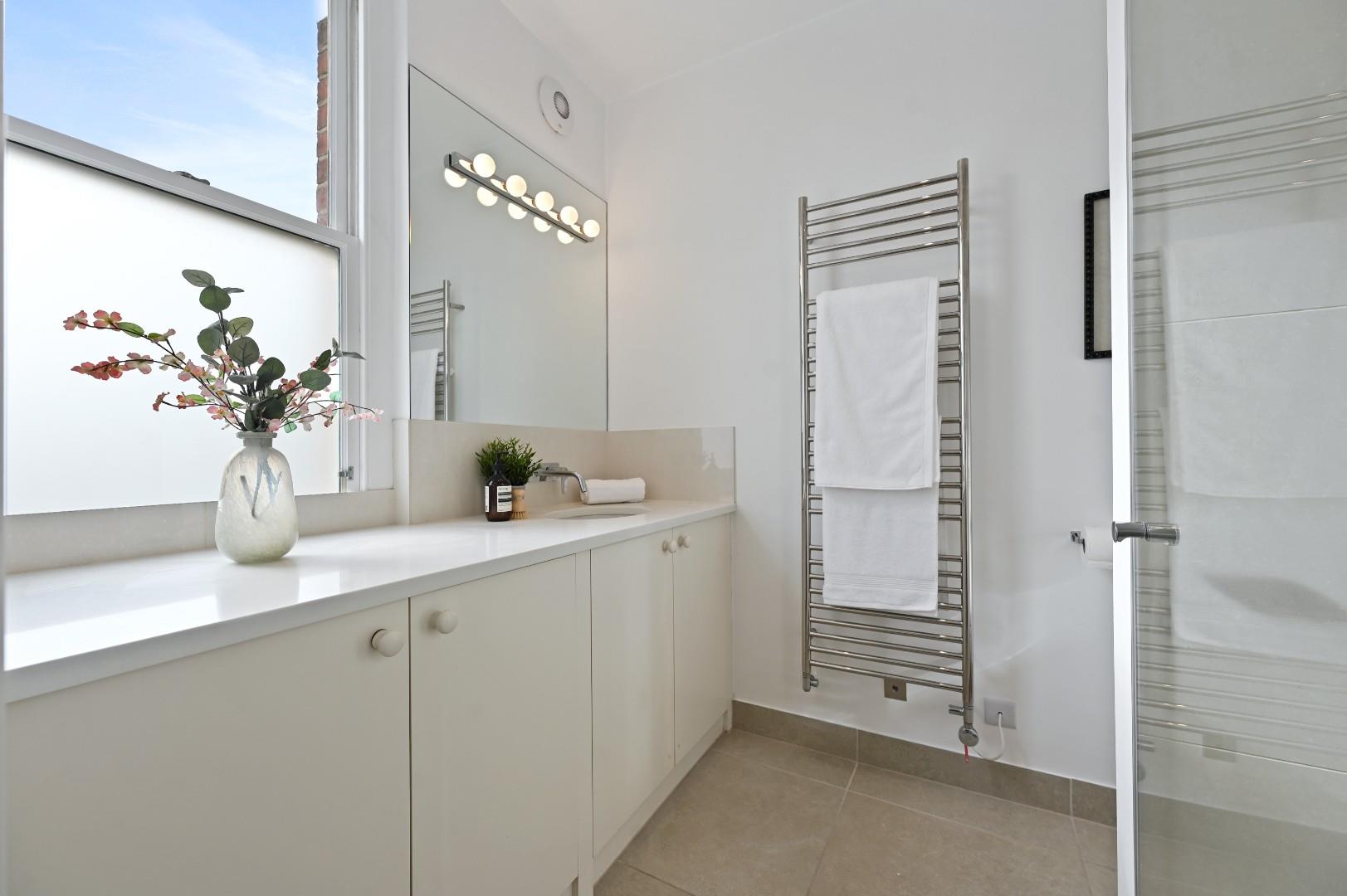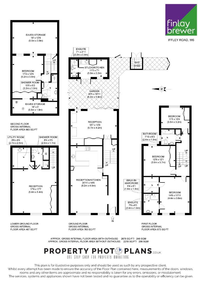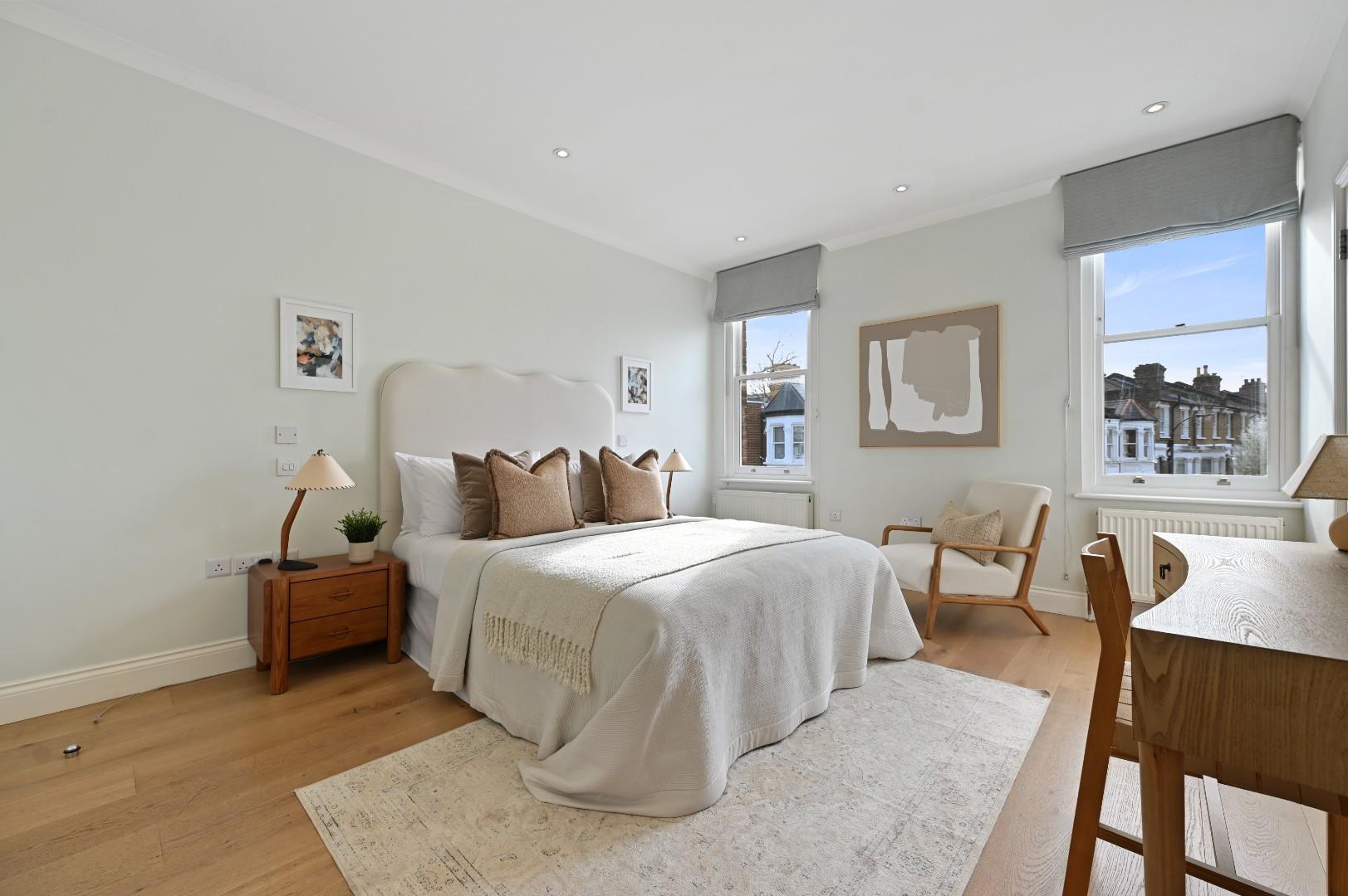 anny flat to the rear of the garden together with off-street parking and potential for EV charging. The high-ceilinged kitchen/breakfast room is on the ground floor and there is a lovely full-width reception off the first half landing which has folding doors onto the walled and lawned garden. There is a fabulous garden studio with shower room to the rear of the garden. The lower ground floor has been excavated to create a further reception/media/play room, a generous utility room and shower room. There are 4 bedrooms, 2 shower rooms and a bathroom on the upper floors, including the fantastic principal suite with walk-in wardrobe and en suite shower room. There is also extensive eaves storage. This beautifully presented house has been refurbished to exacting standards, has a great feel, is flooded with light and has the advantage of rear / separate access to the garden studio and can be moved into with no further expense.