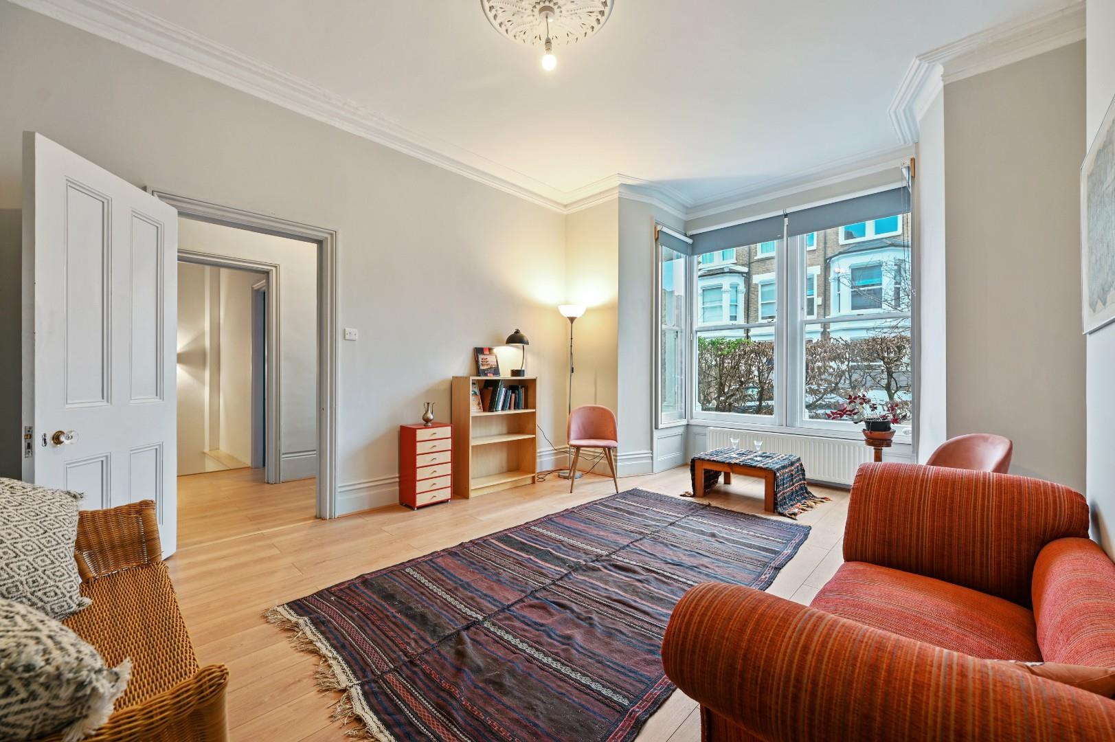 A very well presented 4/5 bedroom 2 bathroom double fronted maisonette with a deep southerly paved garden. The impressive and high ceilinged reception to the front has a box bay window and wood flooring. The principal bedroom / 2nd reception is situated behind and has 2 sash windows overlooking the garden. The dining room is beside and steps lead down to the well equipped kitchen/breakfast room with good built in cupboards and integrated appliances. There is also a single bedroom / study to the front with 2 sash windows. There are 3 generous bedrooms on the lower ground floor and 2 bathrooms. This contemporary and well configured property of approximately 1607 sq ft is ideally located for amenities and transport links from Shepherds Bush & Hammersmith.