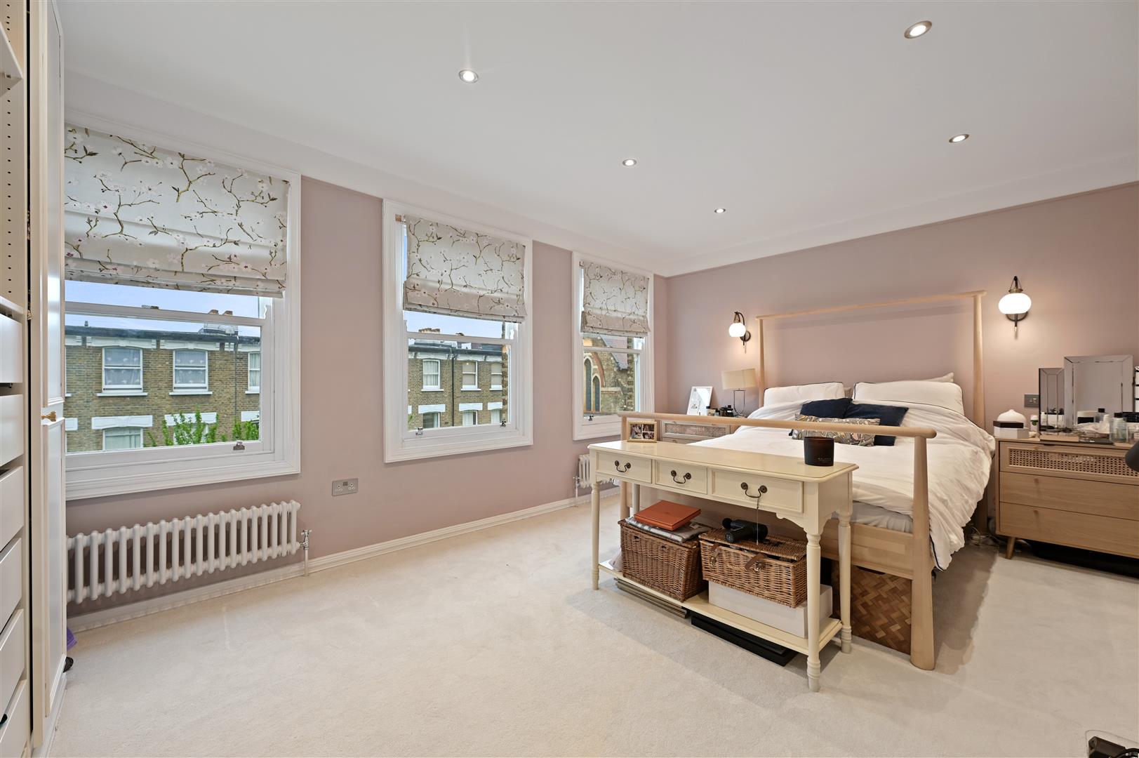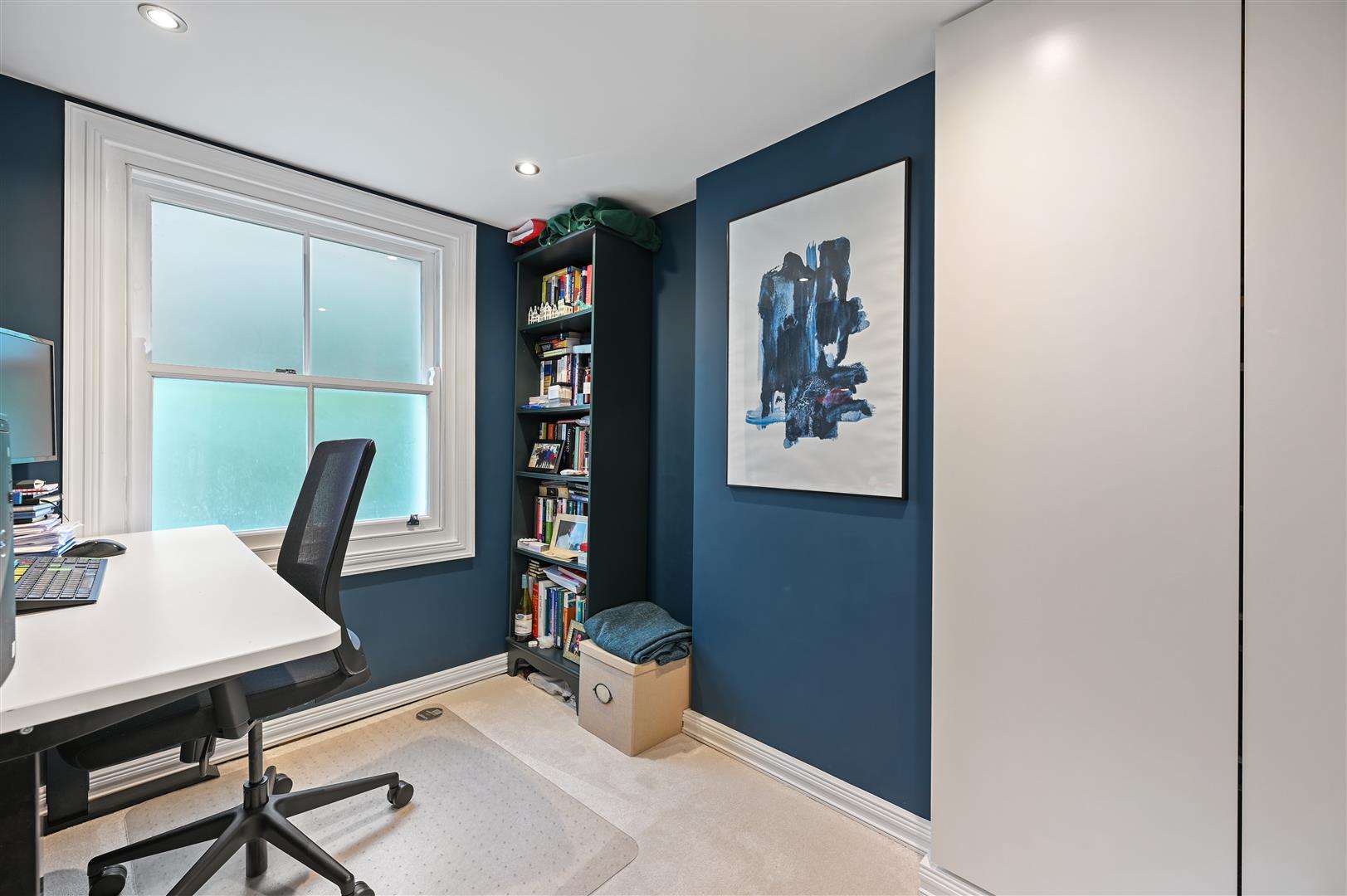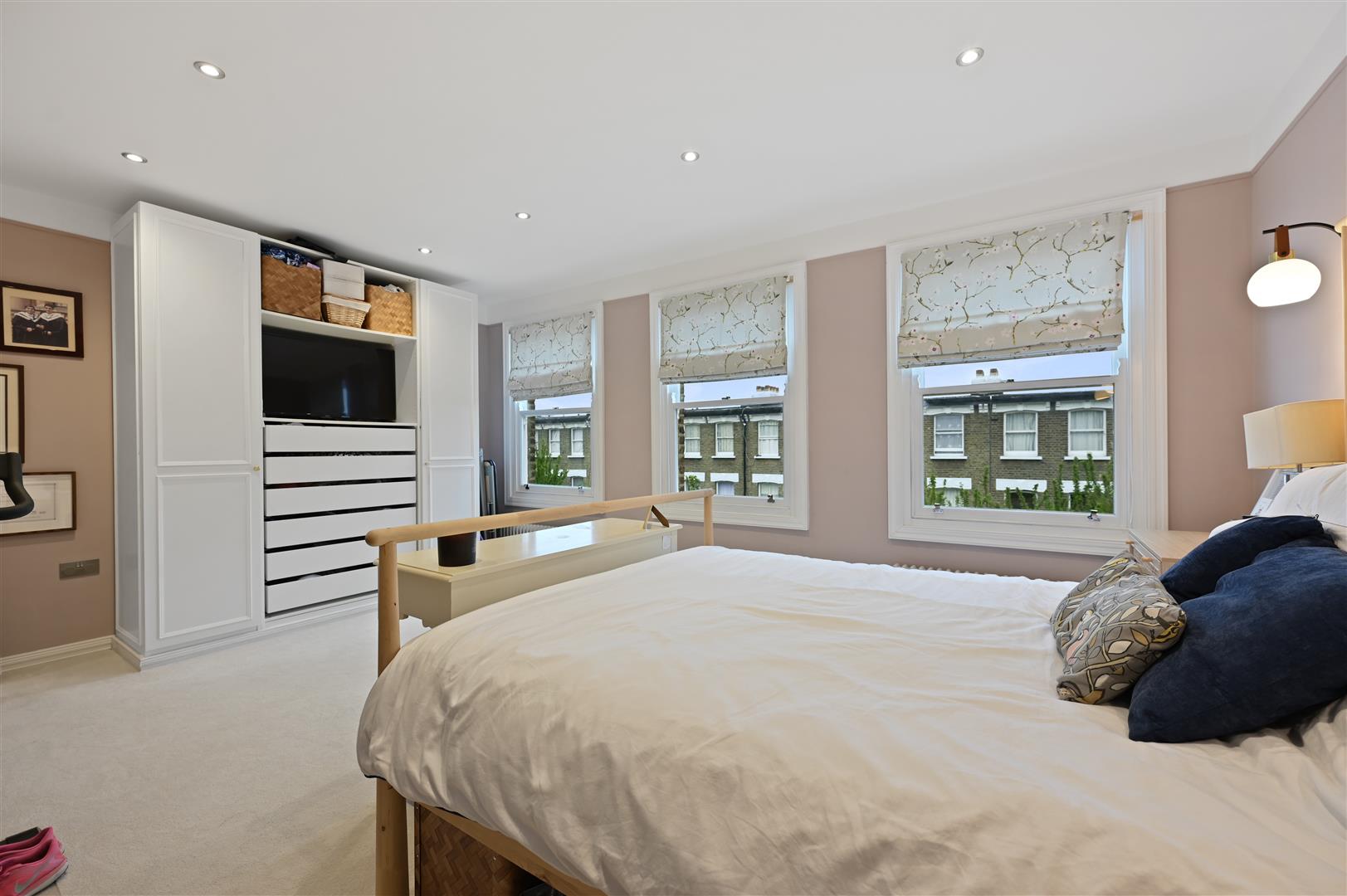 An immaculate, contemporary 3/4 bedroom maisonette occupying three floors of a handsome Victorian building with excellent living/entertaining space and a decked roof terrace. The full width reception to the front of the first floor has 3 sash windows, enjoys a southerly aspect and has beautiful herringbone wood flooring. The well-appointed Shaker style kitchen has excellent storage and integrated appliances. There is generous bathroom with walk in shower and stand-alone bath on the half landing leading to the second floor. There are 2 good size double bedrooms on the 2nd floor including the fabulous full width principal bedroom with built-in cupboards and 3 sash windows. The decked roof terrace is accessed via the top floor half landing, beyond which is the third double bedroom and shower room. The 4th bedroom/study is next to the entrance on the 1st floor half landing.
