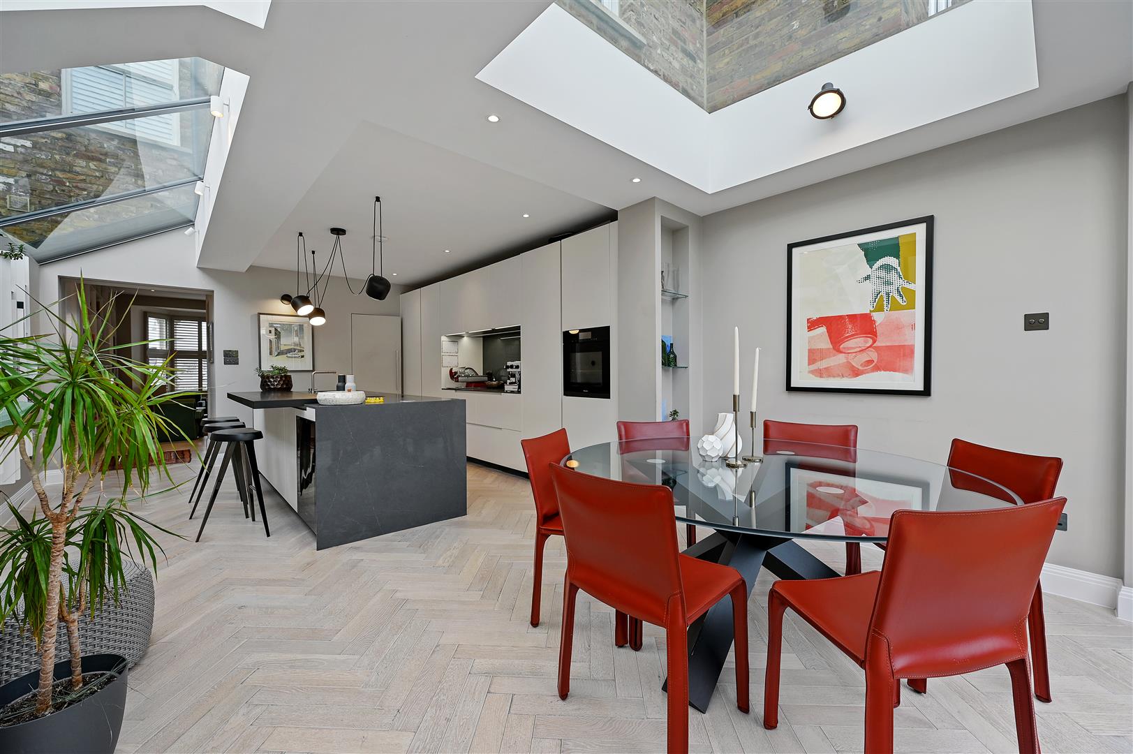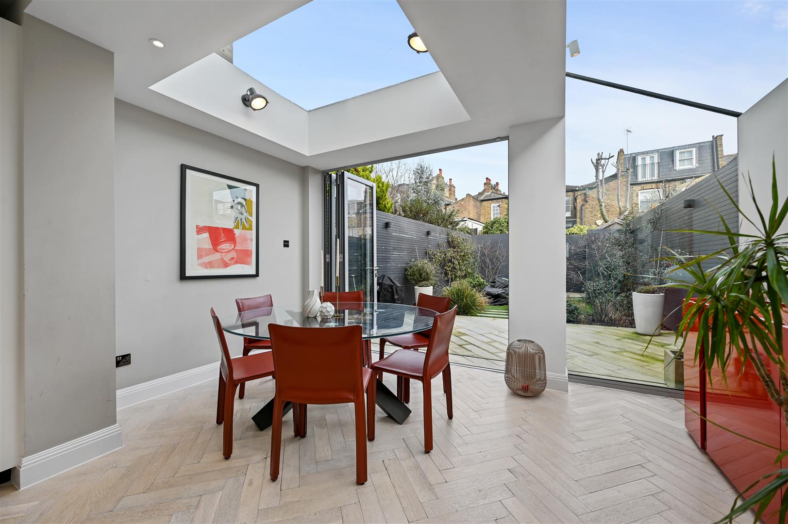A stunning 3 double bedroom, 2 bathroom Victorian terraced house with superbly designed living spaces, a sleek contemporary finish and a beautiful, landscaped garden – one of the deepest on the road! The ground floor reception room has a bay window, herringbone wood floor (which continues throughout the ground floor) and cleverly designed custom joinery. The full width kitchen/dining room features Poliform units, including a central island, with a raised bar and is filled with natural light from its glazed ceiling, dramatic picture window and bi-folding doors which open onto the initially paved and then lawned garden. There are 3 double bedrooms featuring built-in storage and two bathrooms on the upper floors including the wonderful principal bedroom suite which includes a study and/or dressing area. Further benefits include a guest cloakroom and utility room on the ground floor whilst the entire house has underfloor heating. This property of approximately 1446 sq. ft is ideally positioned for the various amenities of Brackenbury Village and is within walking distance of the beautiful green spaces of Ravenscourt Park as well as the river walks along the Thames. There are also excellent state and private schools nearby, including John Betts and West London Free School, as well as the transport hubs of Hammersmith and Shepherds Bush and the retail, restaurant and leisure facilities of Westfield London and soon to be re-opened exciting new London Olympia! A must see!