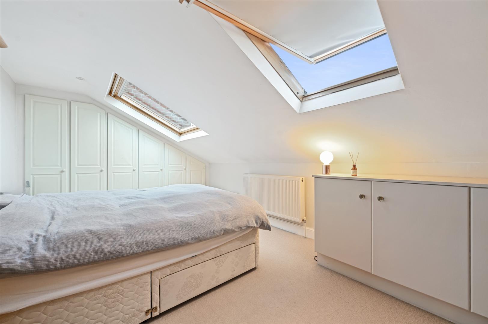 The top floor comprises two double bedrooms with built-in storage and a modern bathroom suite.